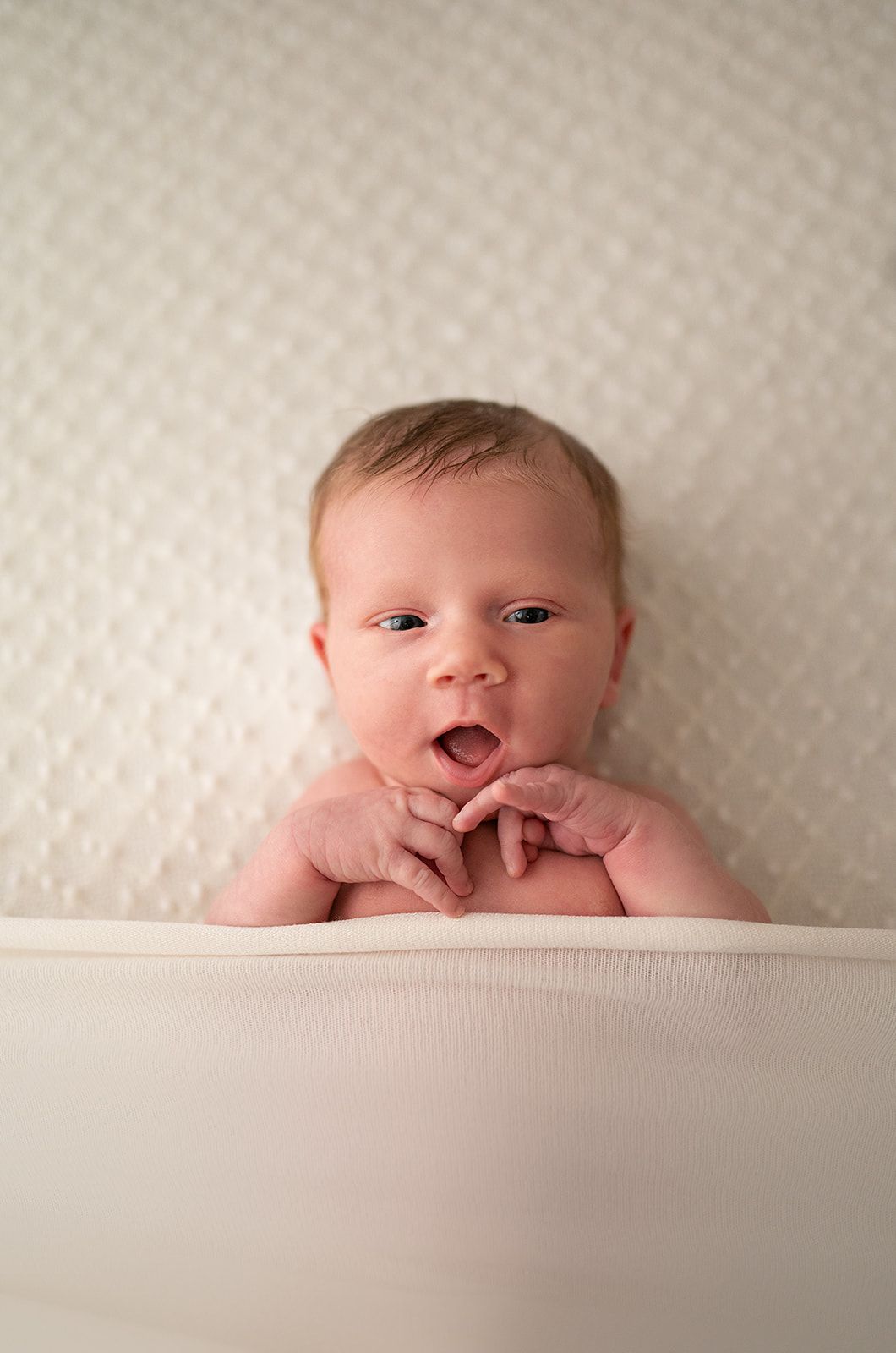 Including the whole family in newborn pictures can be stressful. Since newborn photoshoots run 2-3 hours on average, it can be a lot for older siblings to sit through. To help, I have a small area of toys for kids to play with and we can even break up the pictures and save all group sibling shots for the beginning or end so the siblings don't have to sit and wait the whole time. These two sisters brought their A game to the photoshoot and the middle kiddo brought the best variety of faces. The picture above is by far one of my favorite images I have taken of a newborn with their siblings because it really captures the personality of her sister which is critical to a great photo.